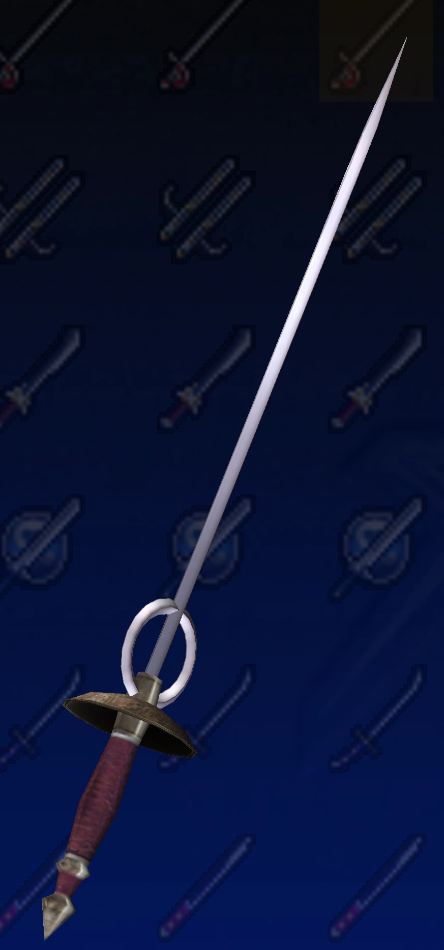 Description: A type of rapier with a thin blade that was used by European knights and the aristocracy in one-on-one duels for honor. The weapon's light weight means that, while it is not good for blocking attacks head-on, it is useful for parrying attacks to vital parts of the body, making it ideal for sword fights.