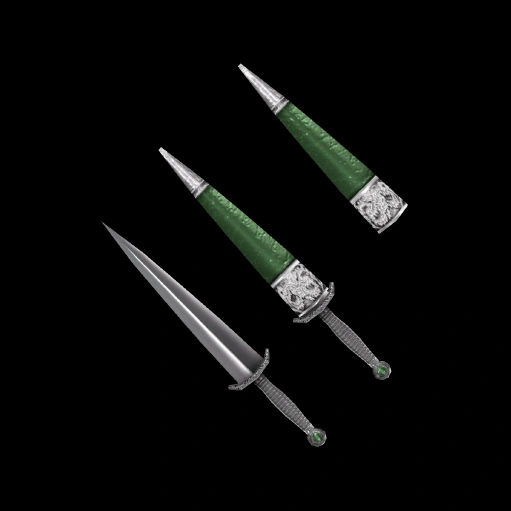 Description: A dagger favored by assassins. The sheath contains poison, so the weapon never loses its toxicity whenever it is drawn. Do not be fooled by its intricate design, however—even the slightest graze from its blade will cost you your life.