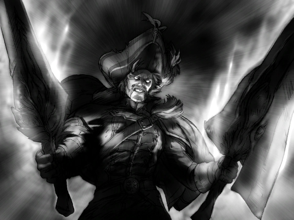 Under the influence of Soul Edge, the dread pirate Cervantes slaughtered his entire crew and fed off of the souls of swordsmen whom dared to venture forth to challenge him.