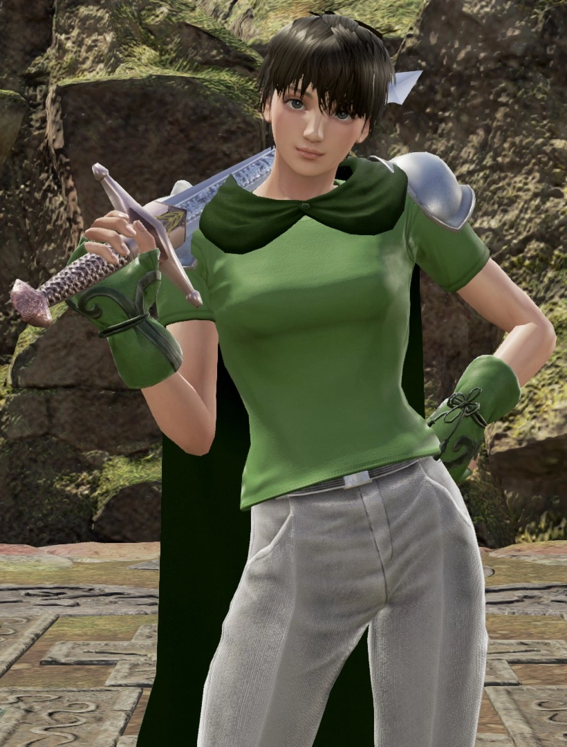 A divine hero from the world of Galmiun, Casino Grayleaf is an unofficial guest character in Soulcalibur VI from the Shining Silver Starlight series. She is the sister of Mint Grayleaf and the granddaughter of Chance Grayleaf.