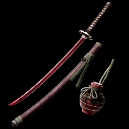 Fugudoku (Earth) (河豚毒・地拵?) is one of Haohmaru's weapons in Soulcalibur VI. Its overall appearance evokes allusion to "the fleetingness of the blood stained earth of this almost infernal world". It is a bloody red version of the Fugudoku, closely resembling Rasetsumaru's Yoto: Torikabuto.