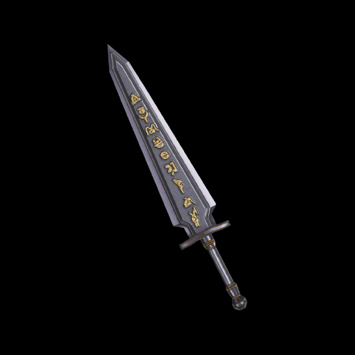Description: A large, black sword from long ago that is said to have been used to slay a dragon. The mark on the blade supposedly inflicts a curse on opponents, and the blade itself is said to be so sharp that merely deflecting an opponent's strike is enough to damage their blade.