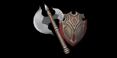 The axe and shield Aeon bears now draw out his power far more than the old weaponry that brought him so much false glory. His mind is ruled by beastly thoughts, and his ruthlessness knows no bounds; those unlucky enough to cross his path all fall dead from the vicious, red signature of his blade.[1][2]