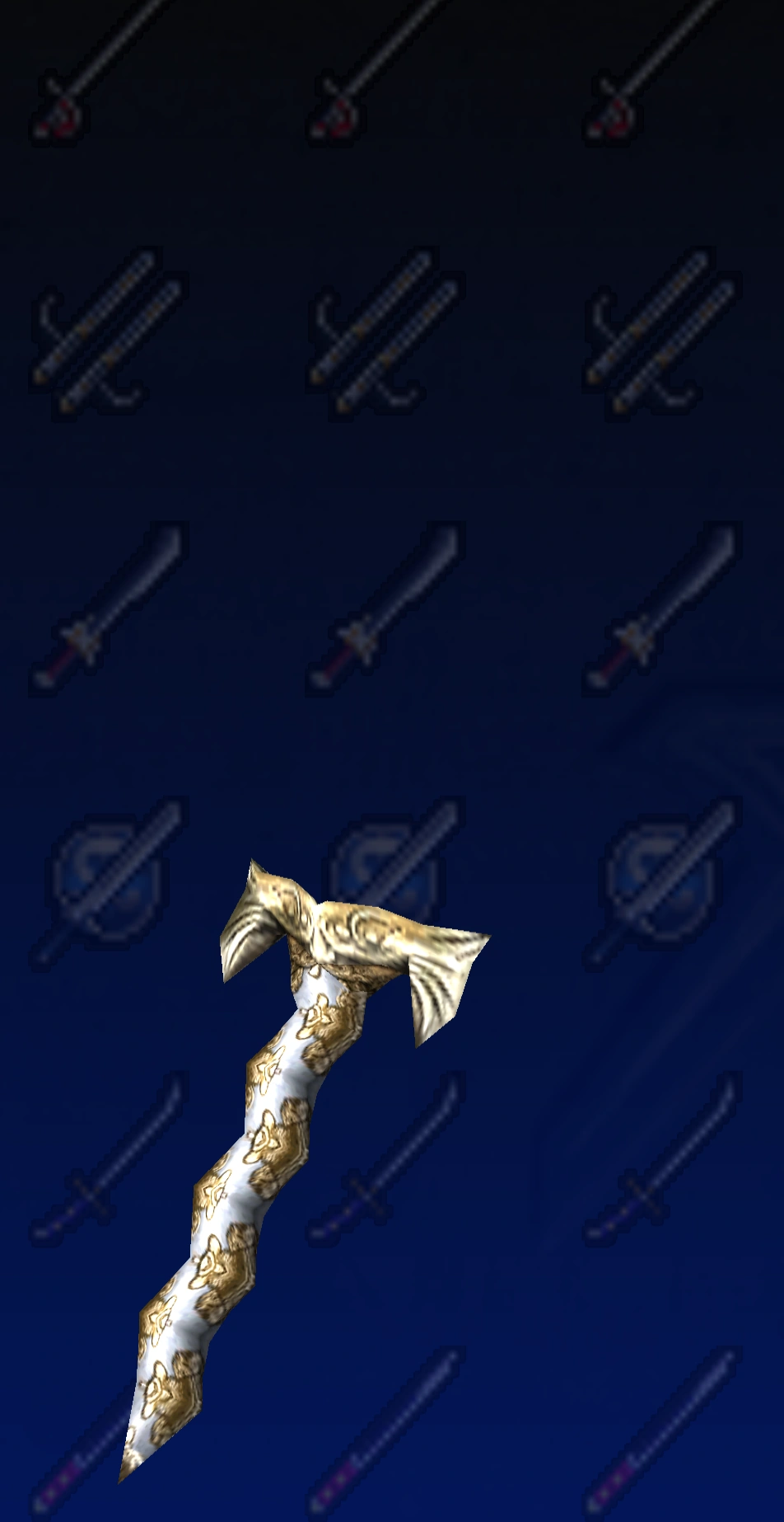 Omega Sword & Elk ShieldSwordbreakerXi Sword & Game Shield Owl ShieldBlue Crystal Rod & Blue Line ShieldFire BladeGladiusSynvalSoul Edge (Complete)OrichalcumMemento
