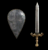 Weapon Gallery Description: A sword and shield made by a skilled craftsman in the cold land of Karelia. Its shining blade conjures up images of wintry battlefields in northern lands. The sword's handle and the shield's shape were no doubt designed to be easily gripped even by cold hands.