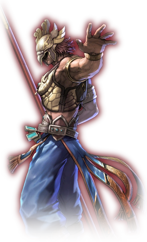 In Soulcalibur III, he dons an outfit similar to his first appearance but with the addition of a single pauldron, bright blues added to his palette and bird-like decorations on his pants