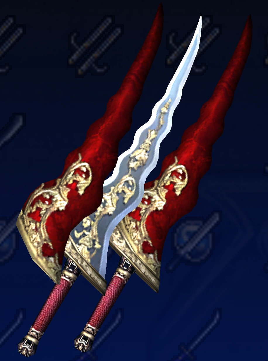 Omega Sword & Elk ShieldSwordbreakerXi Sword & Game Shield Owl ShieldBlue Crystal Rod & Blue Line ShieldFire BladeGladiusSynvalSoul Edge (Complete)OrichalcumMemento