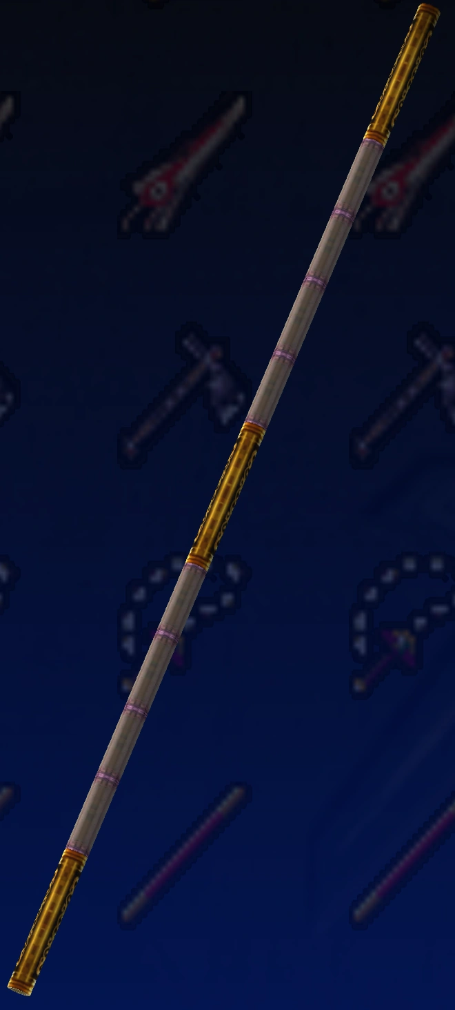Profile: A staff made of bamboo which grows in the sacred Kunlun Mountains of western China. At first glance it appears to be a normal bamboo staff, but because it grows in sacred ground, it yields power to its wielder. Unfortunately, since it has not been modified for use as a weapon, it is not suited for stopping an opponent's blows.
