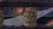 The old man began working to raise a barrier over the stone platform near the cave where he dwelled. He brought out dozens of sacred items from the dusty recesses of his cave and arranged them upon the platform with great care. Each of these ritualistic artifacts had been painstakingly carved by Edge Master in an attempt to suppress the evil inside him, which had not faded since the time he wielded the Soul Edge. The scriptures etched into these items contained teachings so ancient that they were no longer passed down in the current age.