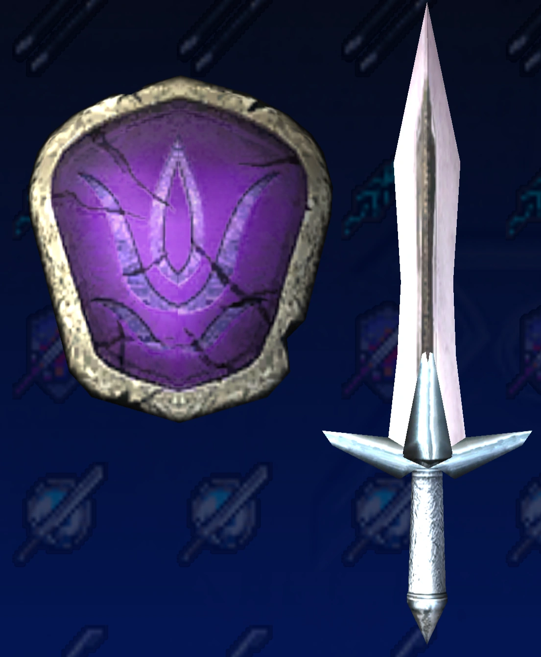 Omega Sword & Elk ShieldSwordbreakerXi Sword & Game Shield Owl ShieldBlue Crystal Rod & Blue Line ShieldFire BladeGladiusSynvalSoul Edge (Complete)OrichalcumMemento