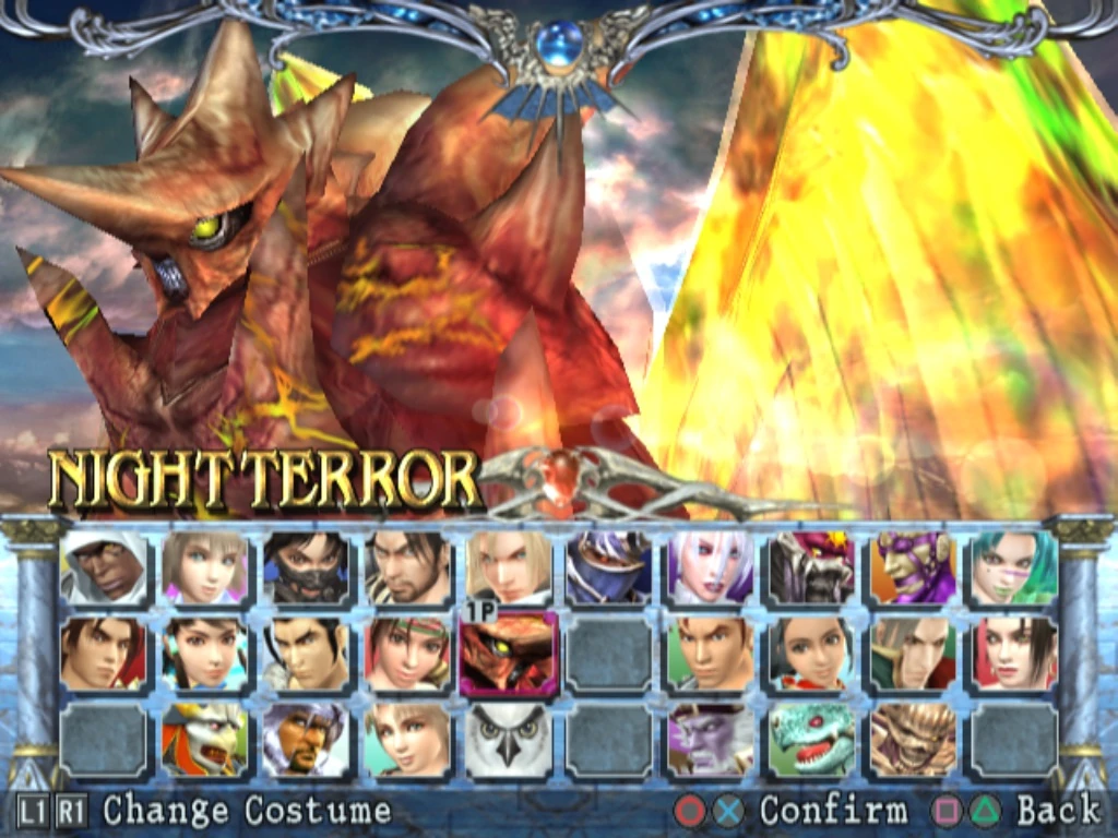 Night Terror is created when the energies of both the Soul Edge and Soul Calibur are fused with the remains of Nightmare, which contained Soul Edge's will. In its own profile, Night Terror is strong enough to escape Zasalamel's control and annihilate him. Unlike Nightmare, who is capable of speech, Night Terror just roars and growls. Although it is the same being as Nightmare, Night Terror is much larger and towers over every playable character in the game.