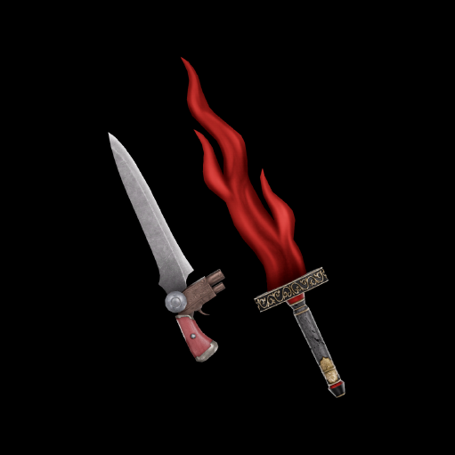 Description: Flames burst forth when this sword strikes its target. It is also said that it can never be melted, even in the hottest of furnaces. Shortly after being near the crater of Mount Etna, it was stolen, leaving only a trail of rumors in its wake. While many of the stories are likely apocryphal, the ones about its flames inflicting unhealable wounds are true.