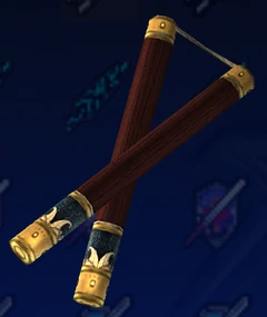 Maxi crafted these nunchaku, reminders of his oath of vengeance, with his own two hands. Their name means "the dragons, reborn, will gather," an expression of his determination to fulfill that oath.
