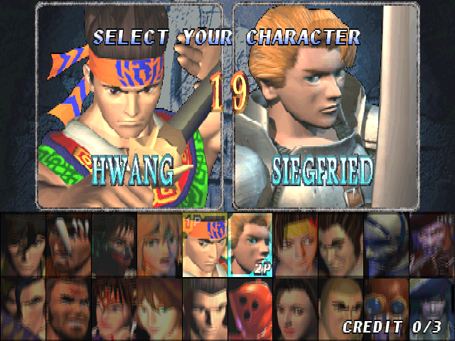 Chinese Sword | Appears on the roster along with the other characters, unlike in the original where he was a secret character. Mitsurugi and Hwang's character selection boxes swap places in the Korean version |