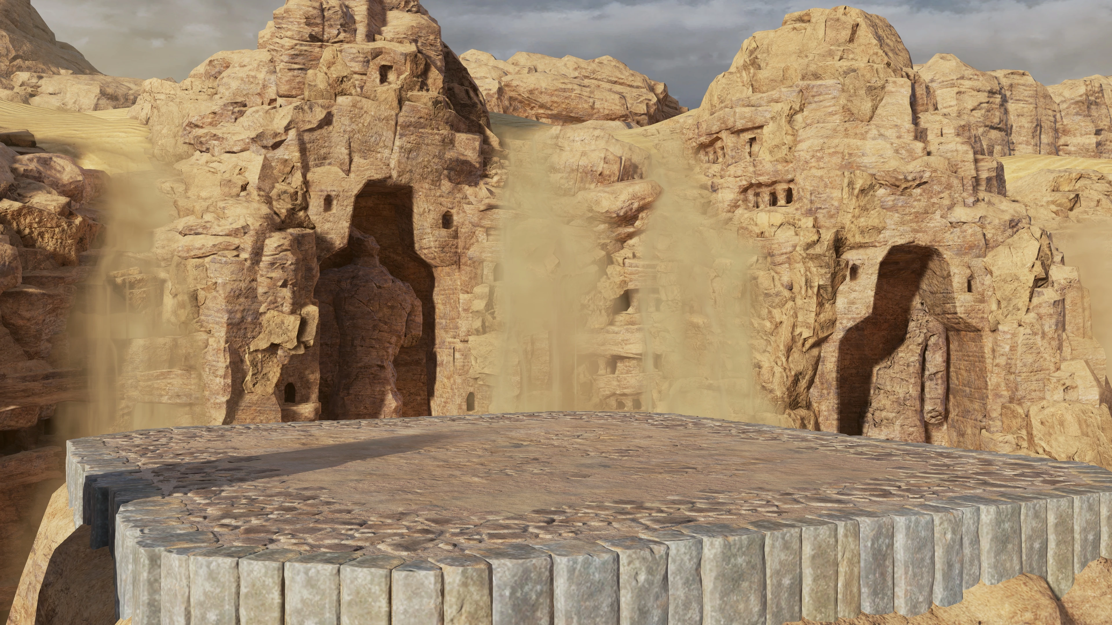 Sunken Desert Ruins (熱砂に沈む遺跡?) is a stage that appears in Soulcalibur VI. It is primarily associated with Seong Mi-na.