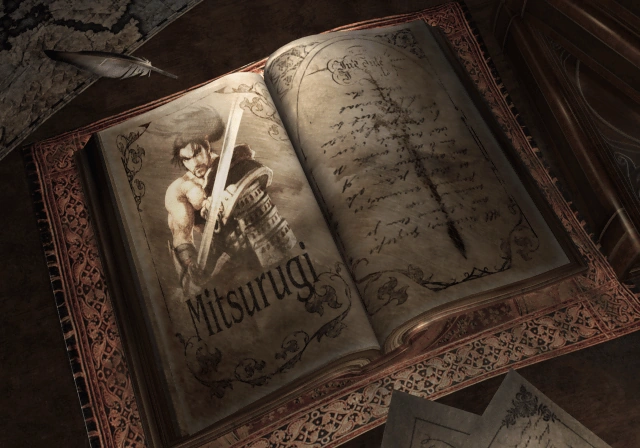 | Having defeated the guardian of the treasure, it now all belonged to Mitsurugi. But he had no interest in anything not related to Soul Edge. Soon, he found notes containing information that the merchant had gathered before his death. It appeared that this man never actually obtained Soul Edge. |