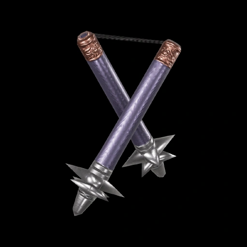 Description: Nunchaku made from two iron rods connected by a chain. Built for destructive power above all else, they are difficult to wield, affecting the accuracy of less-experienced users. However, the extra weight means combo attacks can shatter the defenses of the enemy.