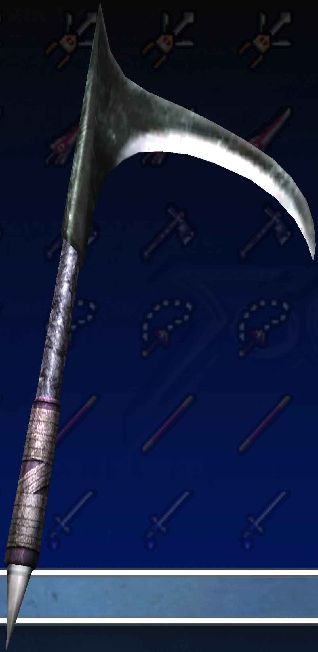 Description: A giant scythe wielded by Death. Thanatos is the personification of death in Greek mythology. This soul-harvesting weapon could indeed be described as death incarnate. It was originally designed to be used by the angel of death, who had no reason to fear injury, and thus is not constructed to provide any defense.