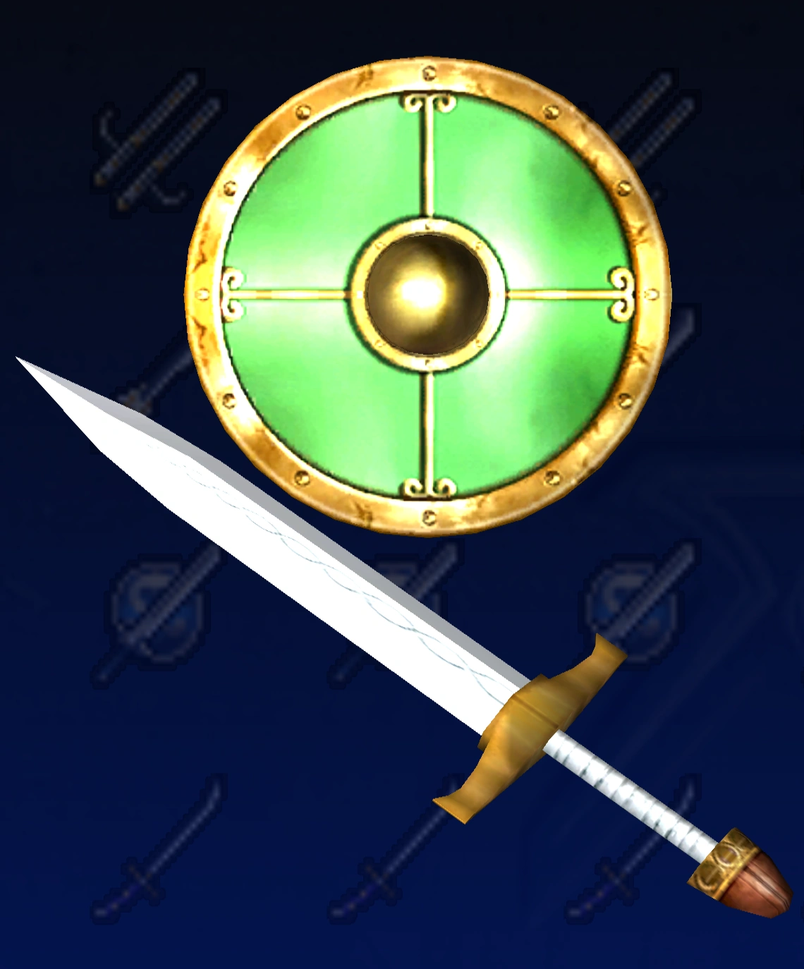 Soulcalibur II Ω Sword & Elk Shield (1P)Ω Sword & Elk Shield (2P)SwordbreakerXi Sword & Game Shield Owl ShieldBlue Crystal Rod & Blue Line ShieldFire BladeGladiusSynvalSoul Edge (Complete)OrichalcumMemento